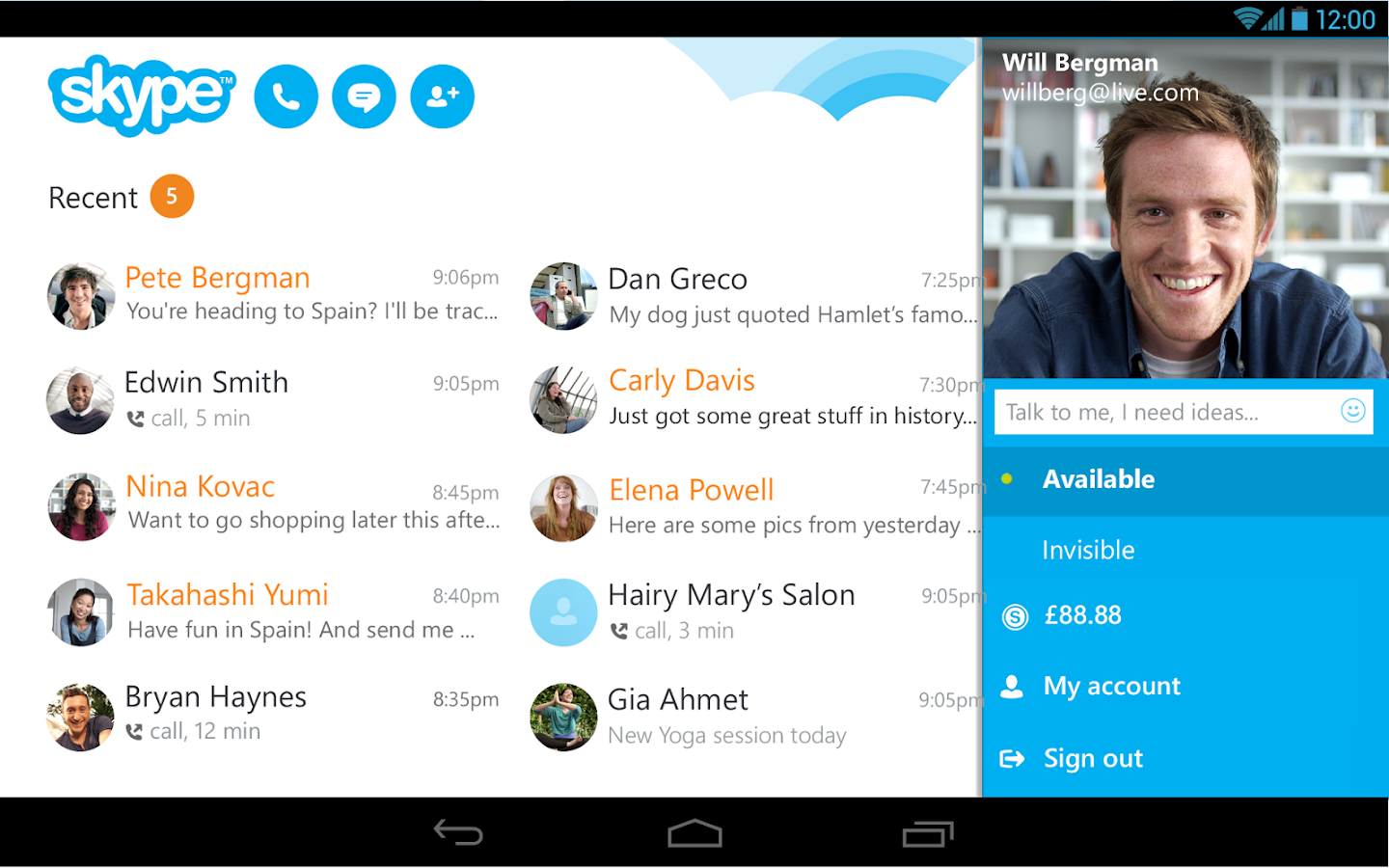 التحديث الجديد لتطبيق سكايب من متجر جوجل بلاي.