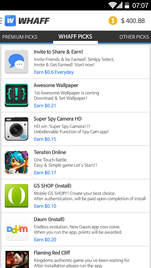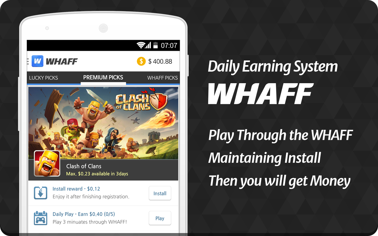 - برنامج Whaff لربح المال عن طريق تحميل تطبيقات والألعاب الى هاتفك ..