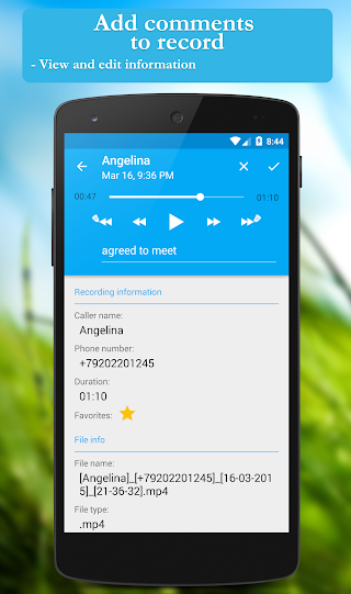 يعتبر تطبيق Call Recorder من افضل برامج تسجيل المكالمات لهواتف الاندرويد البرنامج يتيح لك تسجيل اي مكالمة قادمة اليك او تقوم انت باجراءها. من مميزات البرنامج انه يمكنك تحديد جهات اتصال ” اسماء ” معينة لتسجيل المكالمات لها بشكل فوري واوتوماتيكي دون الحاجة الي الضغط علي اي شئ فيي البرنامج لانه سيعمل بشكل تلقائي عند اجراء المحادثة. برنامج مميز انصح بتجربته سجل فقط الأحاديث اللازمة