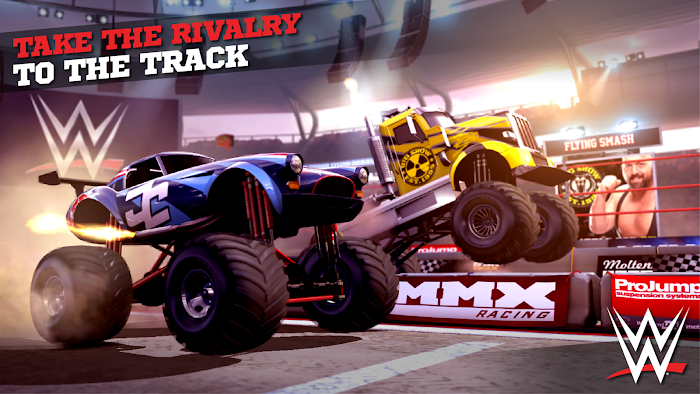 لعبةMMX Racing Featuring WWE سباق القوة سباق المصارعة هل شاهدت يوماً حلبة مصارعة لسيارات ضخمة ؟؟! أن كان لا فإليك اجمل لعبة سباق الشاحنات والسيارات المدرعة ذات العجلات الكبيرة التي تحمل جميع خواص ومميزات لعبة المصارعة الشهيرة WWE ، تتميز هذه اللعبة بتوفر عدد واسع من السيارات المخيفة بمحركاتها الوحشية وعجلاتها الضخمة وكذلك تمتاز بدقتها الرسومية العالية ومؤثرات الصوتية الخارقة سوف تشعرك بحماس ومتعة اللعب فعلاً أنها رائعة ، وأضع بين ايديكم نسخة مهكرة المال يمكنك شراء وتطوير اي سيارة في اللعبة من غير قيود ويمكنك تجربتها على هاتفك الآن وأنا شخصياً قمت بتجربتها على هاتف Galaxy Note 3 نسخة اللوليبوب وتعمل بدون مشاكل الألعاب النارية